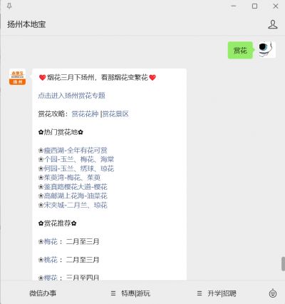 温馨提示:微信搜索公众号扬州本地宝,关注后在对话框回复【赏花】查看扬州赏花推荐打卡点,赏花路线推荐、各景区赏花攻略、各花种花期等信息。